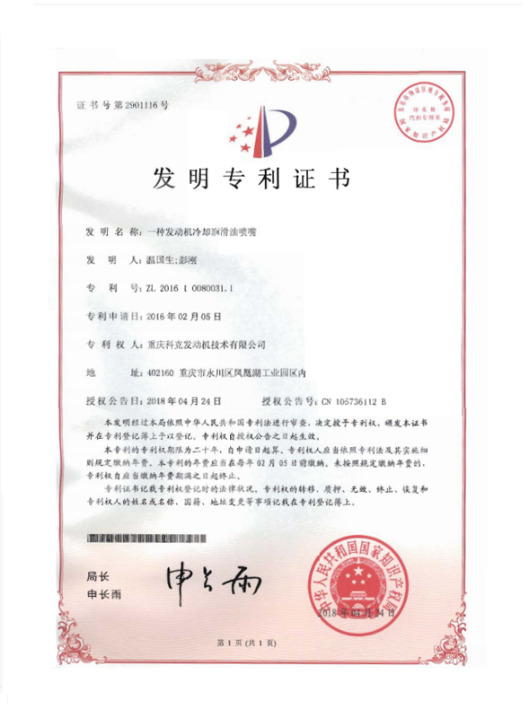 ZL 201610080031.1-A kind of engine cooling lubricant nozzle-Certificate No. 2901116