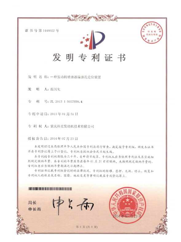 ZL 201310037699.4-A kind of engine injector oil spill hole positioning device-Certificate