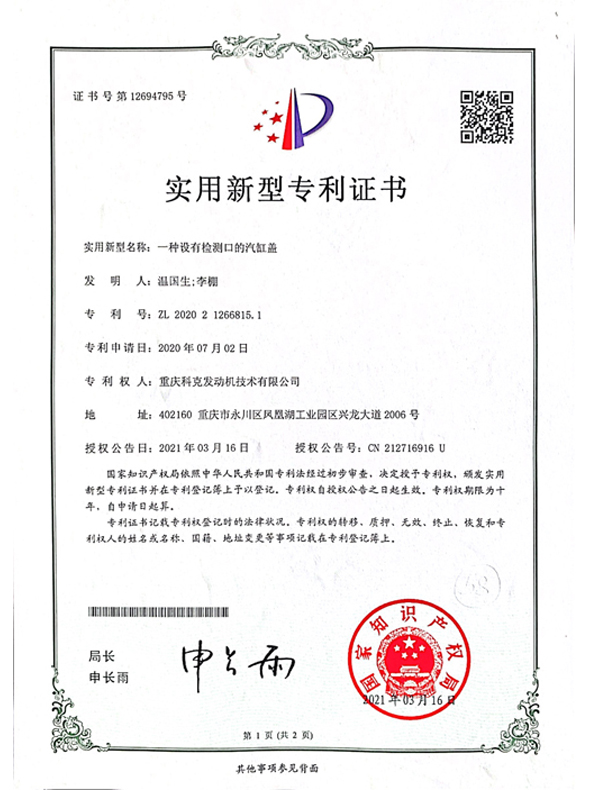 CN202021266815.1 A cylinder head provided with a detection port