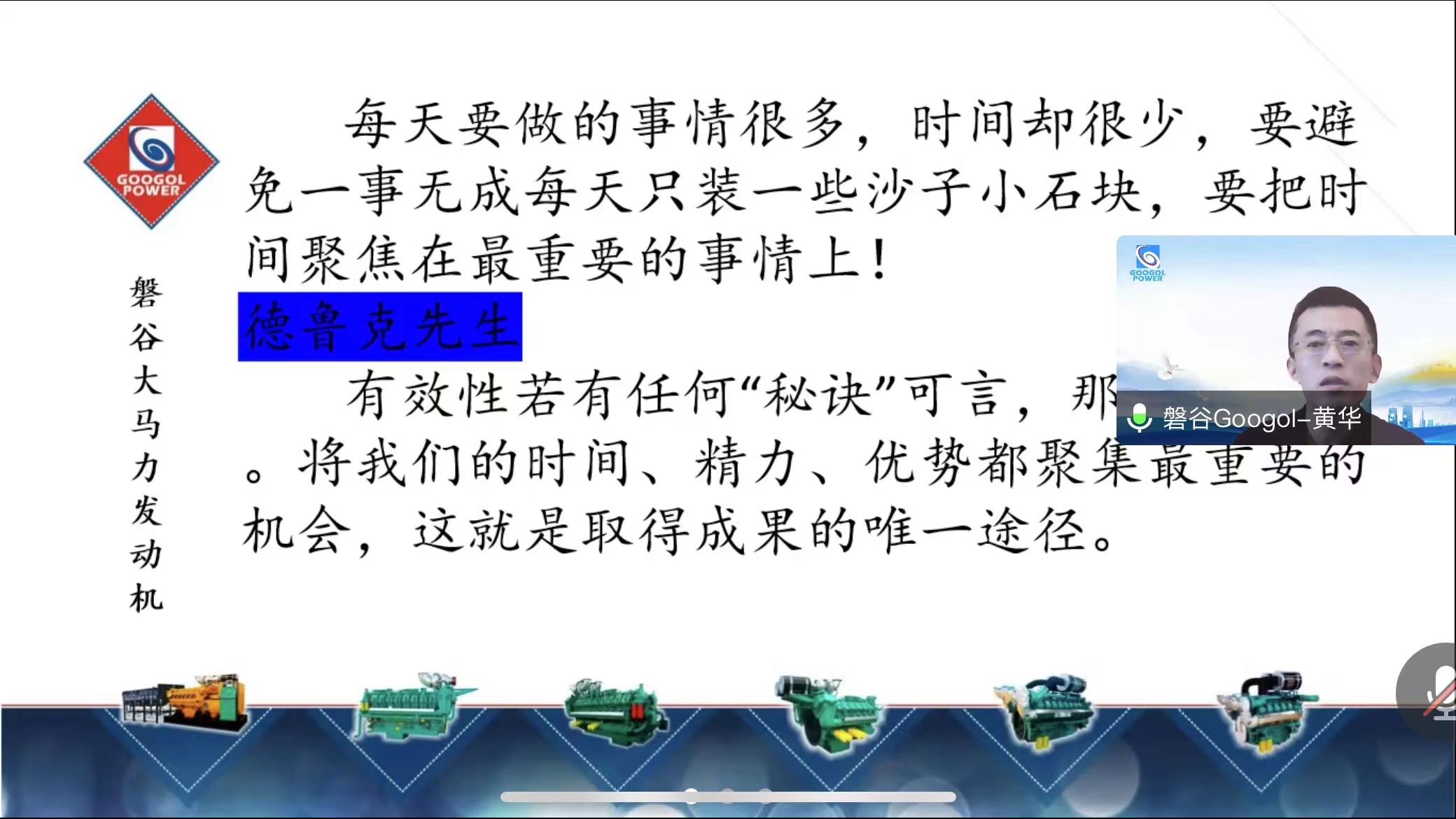 散文家郁達(dá)夫談到,“秋天,無(wú)論在什么地方的秋天,總是好的。”自古逢秋悲寂寥,我言秋日勝春朝。秋分時(shí)節(jié),田疇似錦,沃野生金,棠城(永川)的小雨淅淅瀝瀝,將天空洗得如碧玉般明澈,也似乎在宣告著重慶短暫的秋日來(lái)臨。在這深秋里,9月26日,我們迎來(lái)了第九期磐谷“悅讀和哲學(xué)”復(fù)盤(pán)分享會(huì),本次分享會(huì)由生產(chǎn)部高級(jí)裝配技師孟慶龍主持。 ▲孟慶龍主持分享會(huì) 讀書(shū)共勉 風(fēng)聲雨聲讀書(shū)聲,聲聲入耳;家事國(guó)事天下事,事事關(guān)心。我們以齊讀《文化自信與民族復(fù)興》52至56頁(yè)《人生重大真理》部分開(kāi)始整場(chǎng)分享會(huì),勉勵(lì)大家,讀書(shū)一分耕耘一分收獲,有什么樣的行為作用就會(huì)有什么樣的反作用。 ▲讀者齊讀 現(xiàn)場(chǎng)分享剪影 ▲《從六項(xiàng)修煉到五項(xiàng)精進(jìn)》 李玉望 總裁 李玉望:從心上用功,做事先做人,學(xué)習(xí)“六項(xiàng)修煉和五項(xiàng)精進(jìn)”是幫助我們?cè)凇靶g(shù)”上提升自己,修煉是一個(gè)漫長(zhǎng)的過(guò)程,從“付出不亞于任何人的努力到積善行、思利他”將這些內(nèi)化于心外化于行,即為修煉我們內(nèi)心。 ▲《你在為誰(shuí)工作》 陳煜 采購(gòu)部部長(zhǎng)、悅讀俱樂(lè)部執(zhí)行主席 陳煜:只有抱著為自己工作的心態(tài),才能收獲榮譽(yù)感與成就感,實(shí)現(xiàn)社會(huì)價(jià)值,成就人生價(jià)值。工作就是修煉人生的道場(chǎng),磨煉我們的心靈品質(zhì),工作的態(tài)度即使我們?nèi)绾卧忈屔膽B(tài)度。 ▲《用人所長(zhǎng)之用己所長(zhǎng)》 姜小慶 生產(chǎn)部生產(chǎn)調(diào)度員、悅讀俱樂(lè)部執(zhí)行主席 姜小慶:用己所長(zhǎng),首先要有一個(gè)積極的價(jià)值觀(guān),有對(duì)工作的熱情和正確主動(dòng)的心態(tài),其次,去發(fā)現(xiàn)自己的長(zhǎng)處到底有哪些,對(duì)自己有一個(gè)清醒認(rèn)識(shí),再次,善于思考總結(jié),運(yùn)用外部資源來(lái)助力。 ▲《緊密配合,做大國(guó)工匠》 李棚 研發(fā)部燃油系統(tǒng)工程師 李棚:正如我們講第一臺(tái)發(fā)動(dòng)機(jī)PTAA780發(fā)動(dòng)機(jī)一樣,五大系統(tǒng)兩大機(jī)構(gòu)誰(shuí)最重要呢?可以說(shuō)是缺一不可。我們的產(chǎn)品研發(fā)制造也是如此,大家都是大國(guó)工匠,緊密配合,才能造出大國(guó)重器。 ▲《尋找生命中的大石塊》 黃華 市場(chǎng)部區(qū)域銷(xiāo)售經(jīng)理 黃華:每天要做的事情很多,時(shí)間卻有限,只有有效區(qū)分我們生活中的事,不能碌碌無(wú)為,不斷學(xué)習(xí)成長(zhǎng),每日總結(jié)復(fù)盤(pán),以行促知,以知促行。 ▲《一路追光賦能成長(zhǎng)》-入職磐谷后的所見(jiàn)所思所得 楊道成 物料部倉(cāng)管員 楊道成:走進(jìn)磐谷,三人行必有我?guī)煟诠ぷ髦卸嗳グl(fā)現(xiàn),以人之長(zhǎng),補(bǔ)己之短,行有不得,反求諸己。這使得我能快速融入這個(gè)集體并有認(rèn)同感、歸屬感。 伙伴發(fā)言 ▲何春霞 采購(gòu)部采購(gòu)員、悅讀俱樂(lè)部秘書(shū)長(zhǎng) 何春霞:我每日反省,所做之事是否利人,是否利己,還是利人利己,這幫助我更加剛毅果敢。 ▲夏衛(wèi)國(guó) 物料部部長(zhǎng) 夏衛(wèi)國(guó):種下什么因就有什么果,用積極向上的心擁抱工作和生活。 ▲鐘建標(biāo) 生產(chǎn)部高級(jí)裝配技師、悅讀俱樂(lè)部秘書(shū) 鐘建標(biāo):努力尋找心中的俊豪杰,誠(chéng)心,修身,正己。 寫(xiě)在最后 ▲分享嘉賓合影 天涼好個(gè)秋,在重慶人的印象中四季似乎是“春夏咻冬”,秋天只是曇花一現(xiàn),但我們記得在這個(gè)季節(jié)秋收冬藏,告別田野我們走進(jìn)工廠(chǎng),卻依然記得四季的農(nóng)時(shí),那是歲月播種在心里的種子,我們?cè)谛闹幸膊シN下“積善行、思利他”的種子,讓我們讓“六項(xiàng)精進(jìn),五項(xiàng)修煉”的自我修煉之術(shù)在心中扎根。